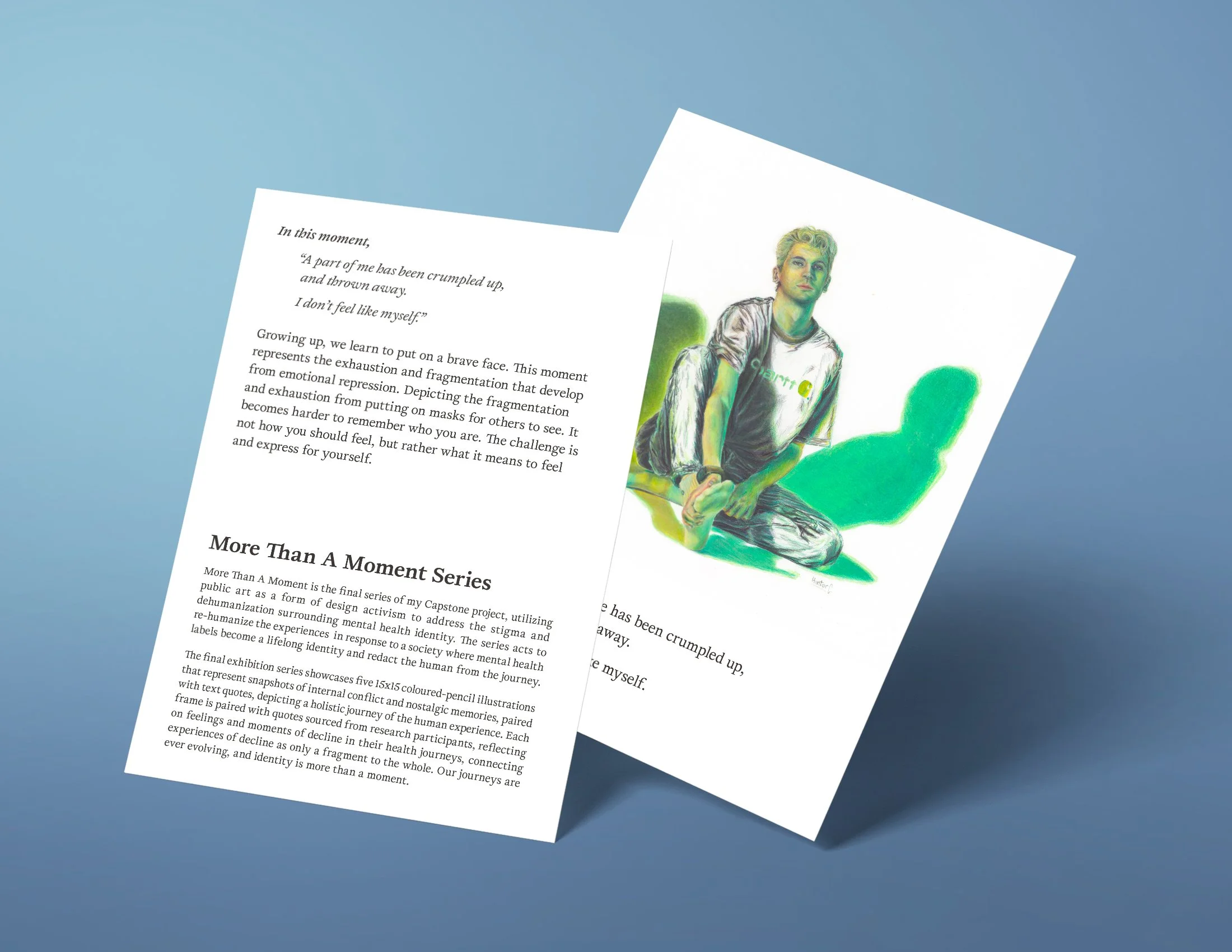 More Than A Moment is the final series of my year-long Capstone project in design research, utilizing public art & design activism to address the stigma and dehumanization surrounding mental health identity.