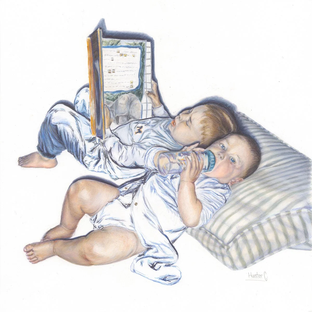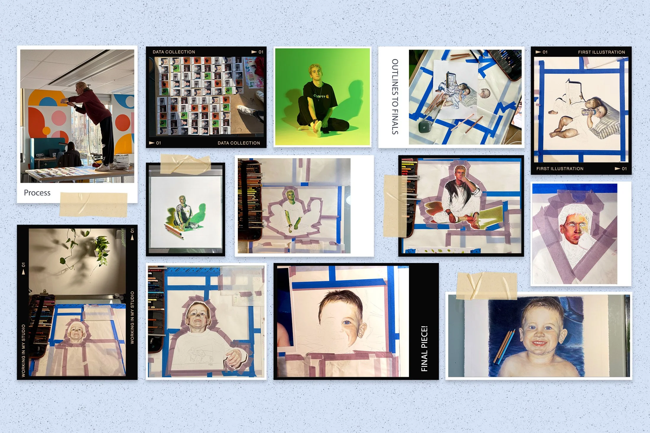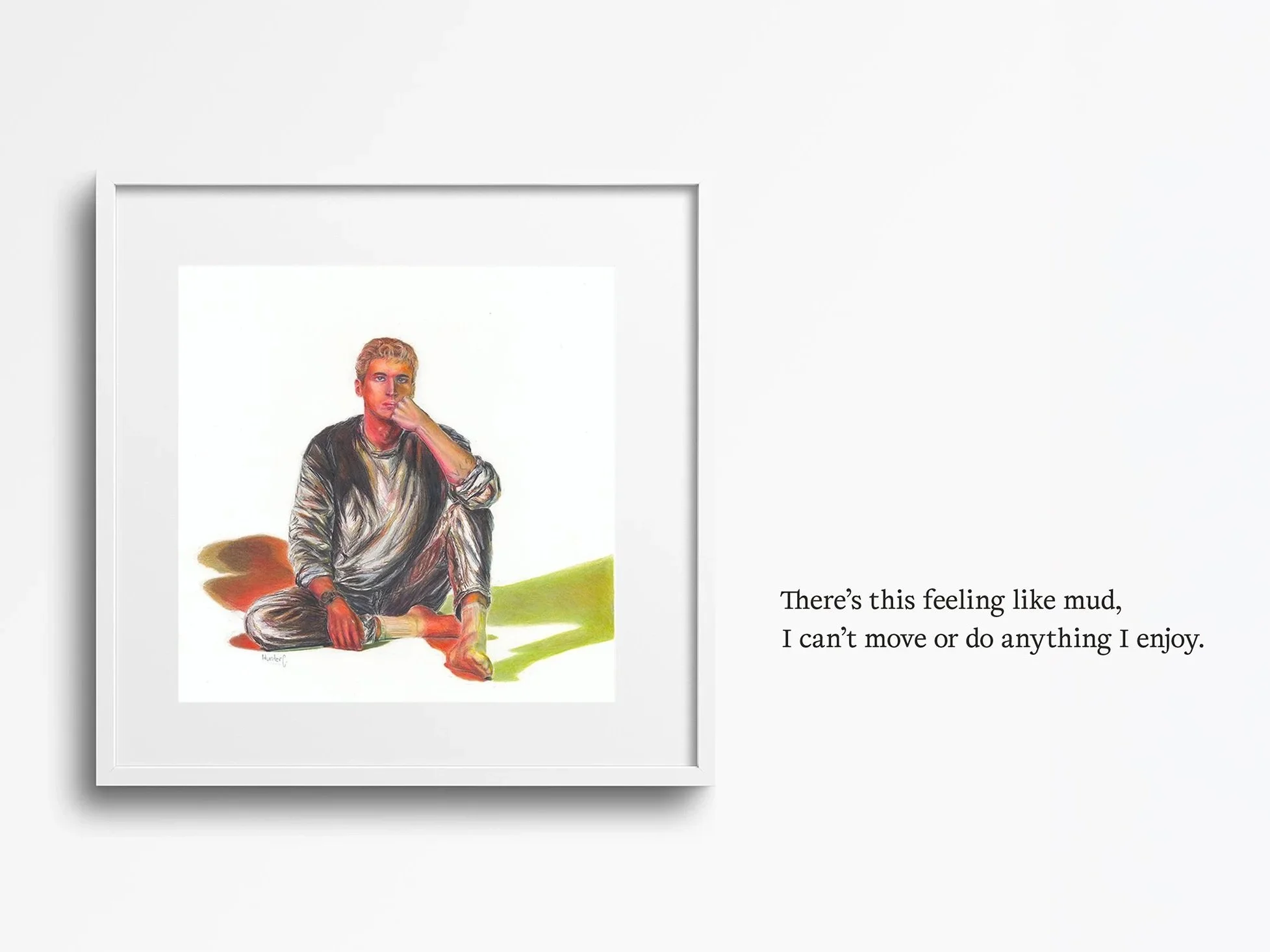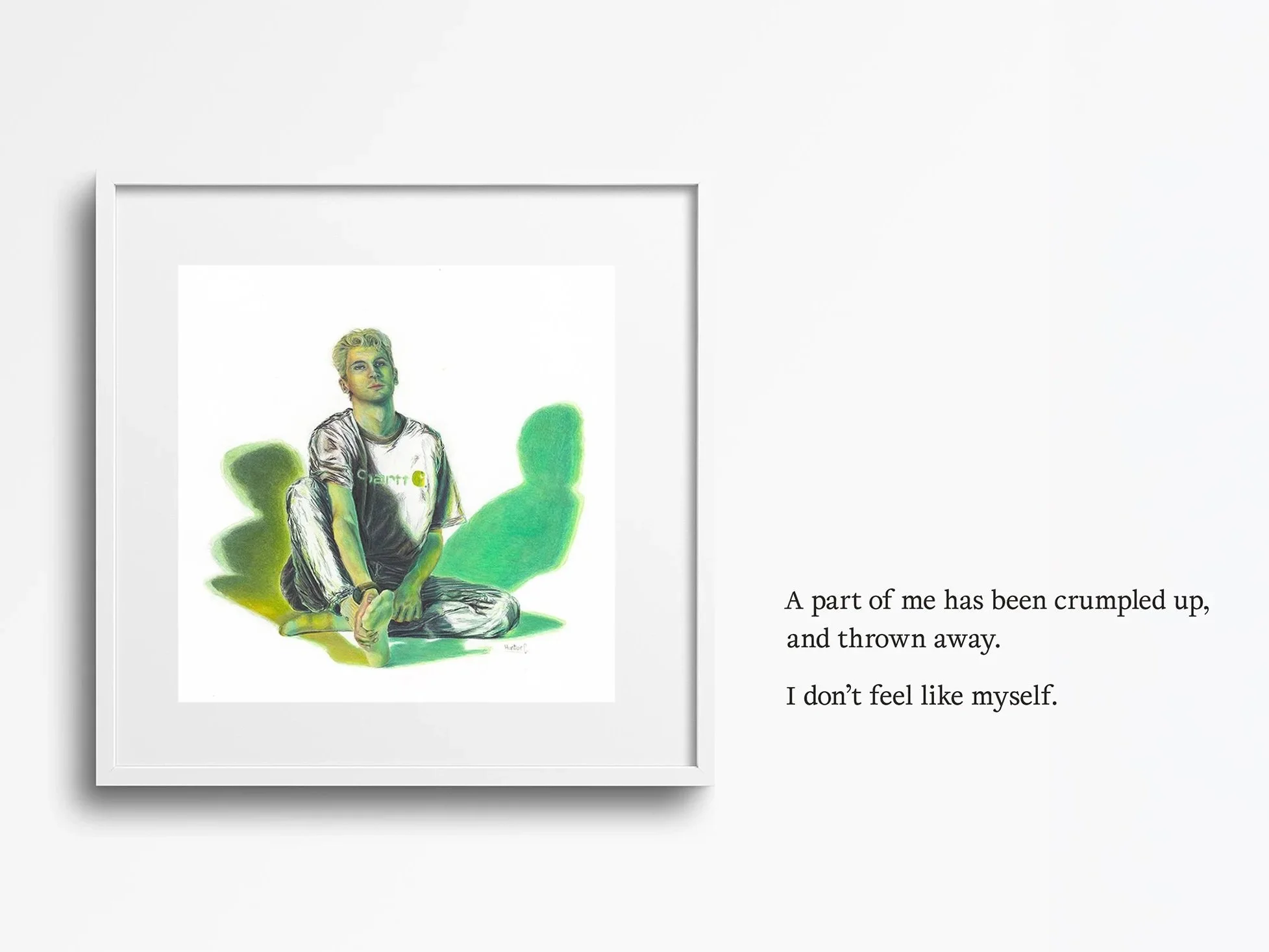 The final exhibition series showcases five 15×15 coloured-pencil illustrations that depict figurative representations of identity, conflicts within the self, and shared experience. Providing a journey balancing internalized conflict with nostalgic memory, encompassing the scope of a holistic mental health journey.