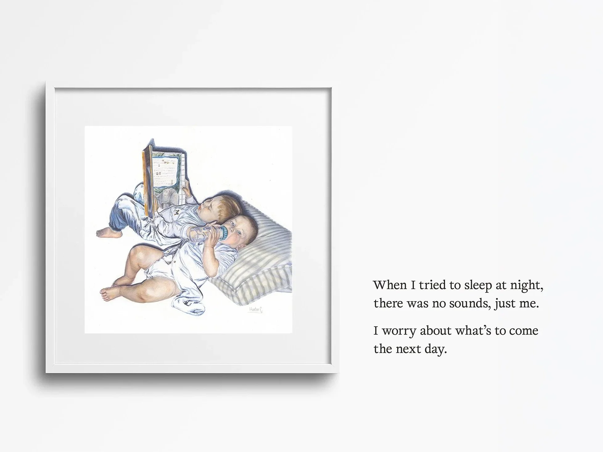 The moment of isolation and insomnia. Questioning the battle of exhaustion and the fear of what you might face when you close your eyes. The moment in the dark, engulfing you. Over time, it becomes harder to remember what it was like to feel safe, protected, and rested.